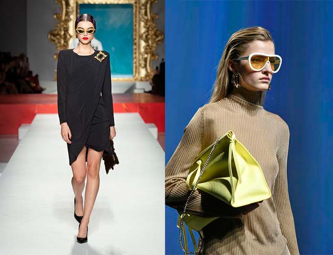 Já a Moschino apresentou uma coleção lúdica, como de costume. Nesta edição, o estilista Jeremy Scott, que apareceu ao final do desfile com um óculos Moschino pink ondulado, se inspirou no mundo das artes para criar peças divertidas adornadas com pedrarias e detalhes de arabescos dourados, remetendo às molduras dos quadros.