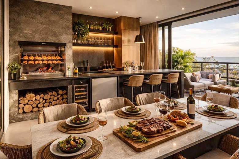 “Evite instalar a churrasqueira em um lugar de passagem ou que seja abafado. O contexto do projeto deve ser agradável e permitir a proximidade das pessoas de forma confortável”, diz.
