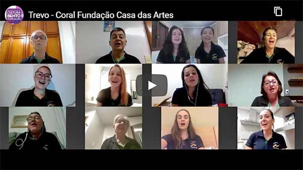 E o Coral da Fundação Casa das Artes segue em sua produção musical via web. Agora, o grupo vocal traz para a comunidade, com arranjos do maestro Gerson De Souza, a canção “Trevo (Tu)”, de AnaVitória e Tiago Iorc. A presidente do grupo coral, Bárbara Eckhardt, salienta que a música compõe o álbum gravado e lançado em 2019 e traz “um sopro de boas energias que só pode ser vivenciado nas relações humanas, desfrutando de amizades boas e gostosas”.