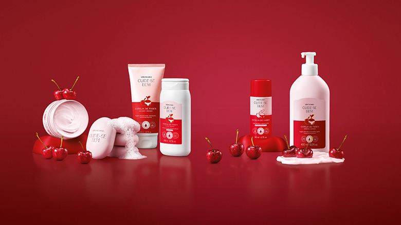 A fragrância de Cereja de Fases foi desenvolvida com neurociência para trazer conforto e bem-estar, criando uma experiência sensorial acolhedora. De perfil floriental frutal envolvente, a fragrância traz mais cremosidade e conforto desde a primeira aplicação, com um fundo de chocolate branco que adiciona uma camada de indulgência e aconchego. Mais do que perfumar, contribui para momentos de pausa, cuidado e conexão consigo mesma ao longo do dia. Composto por dez itens, o portfólio atende às diferentes necessidades que surgem ao longo do ciclo, desde o banho até a hidratação, passando por produtos de alívio, perfumação e cuidados específicos.